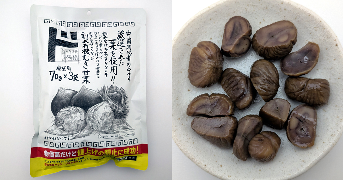 ドン・キホーテのPB情熱価格の割れ有機むき甘栗」を実食した。