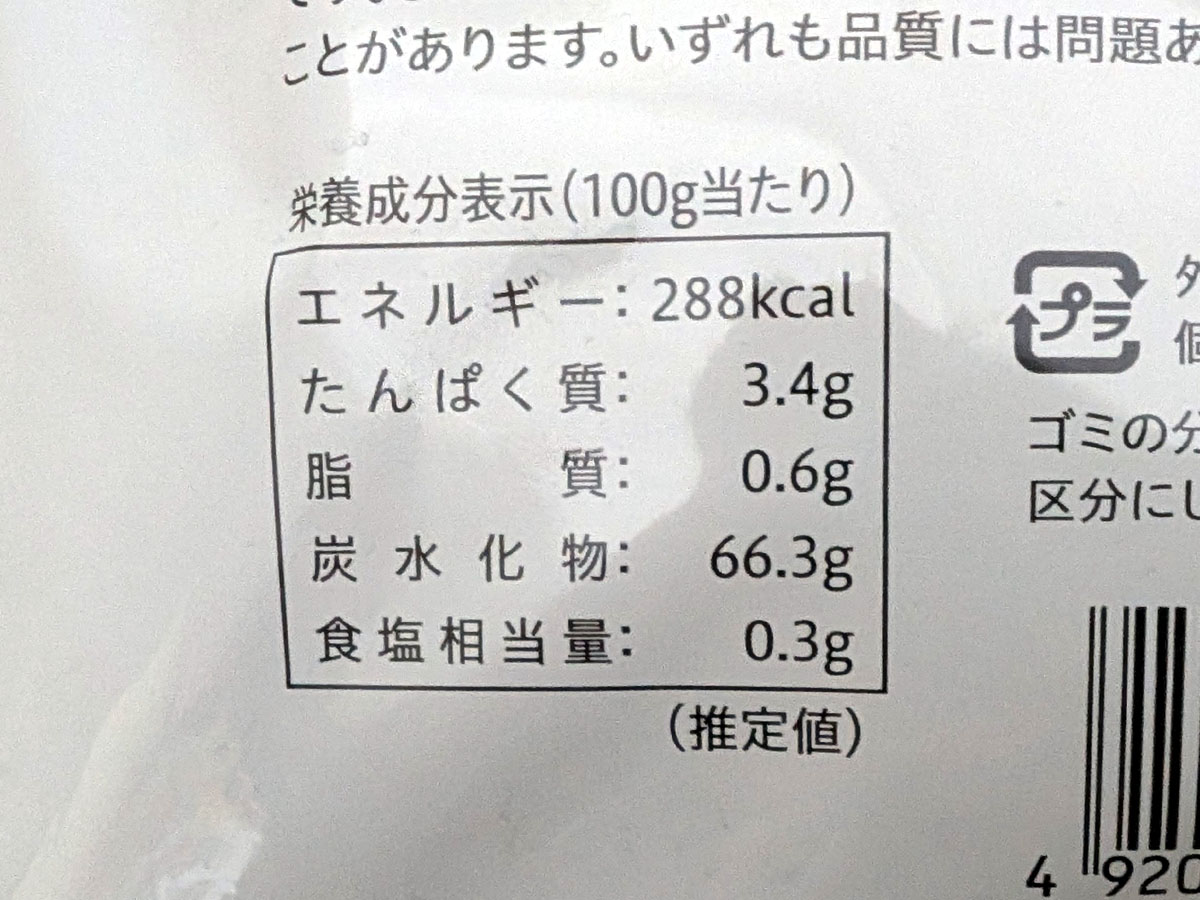 • 100gあたりのカロリー:288kcal