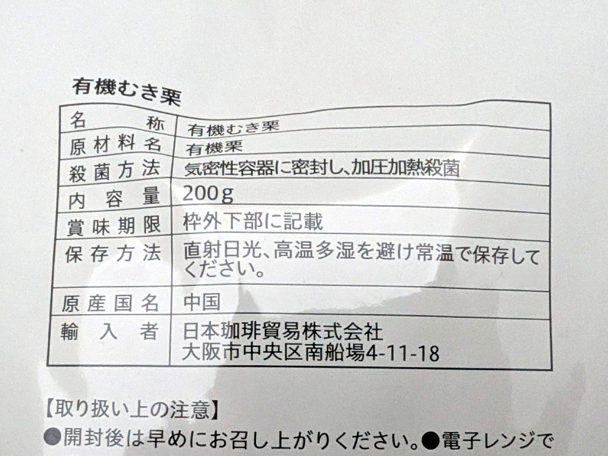 • 商品名:有機むき甘栗