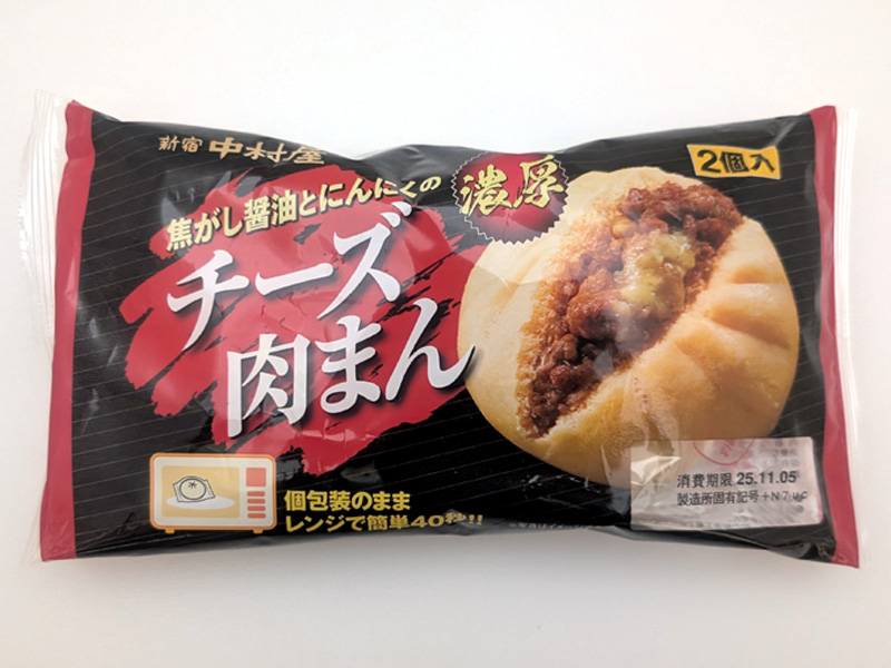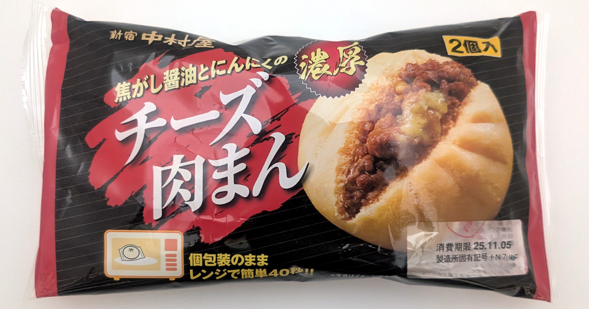 スーパーの肉まんコーナーに見慣れないパッケージの肉まんを発見。その名も『焦がし醤油とにんにくのチーズ肉まん』という新宿中村屋の肉まんだ。どれも美味しそうな文字の羅列に迷うことなく購入を決めた。