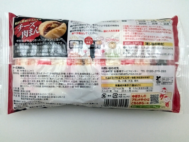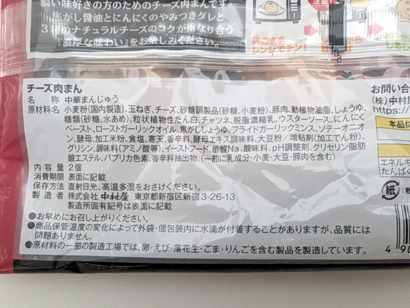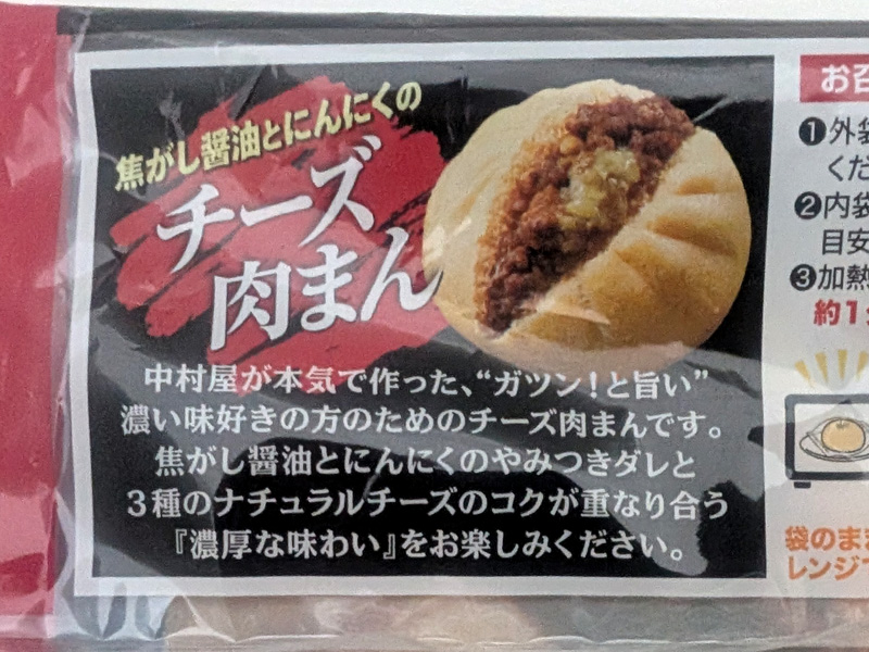 中村屋が本気で作った“ガツン!と旨い”濃い味好きの方のためのチーズ肉まんです。とある。にんにくの風味がどれぐらいあるのか、そしてチーズもちゃんと入っているのか?気になるところだ。