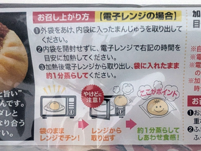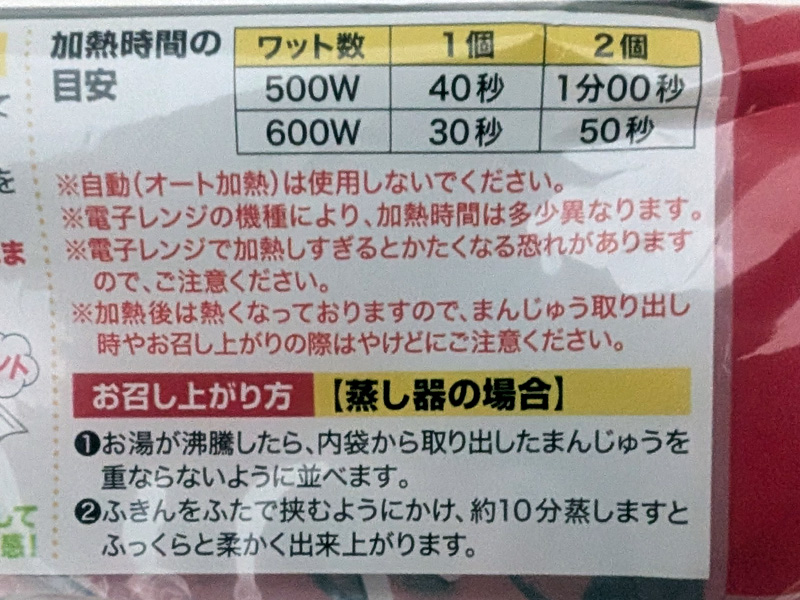 電子レンジでやる場合はこのまま開けずに、蒸し器で調理する場合は袋を開ける。間違えないように注意。