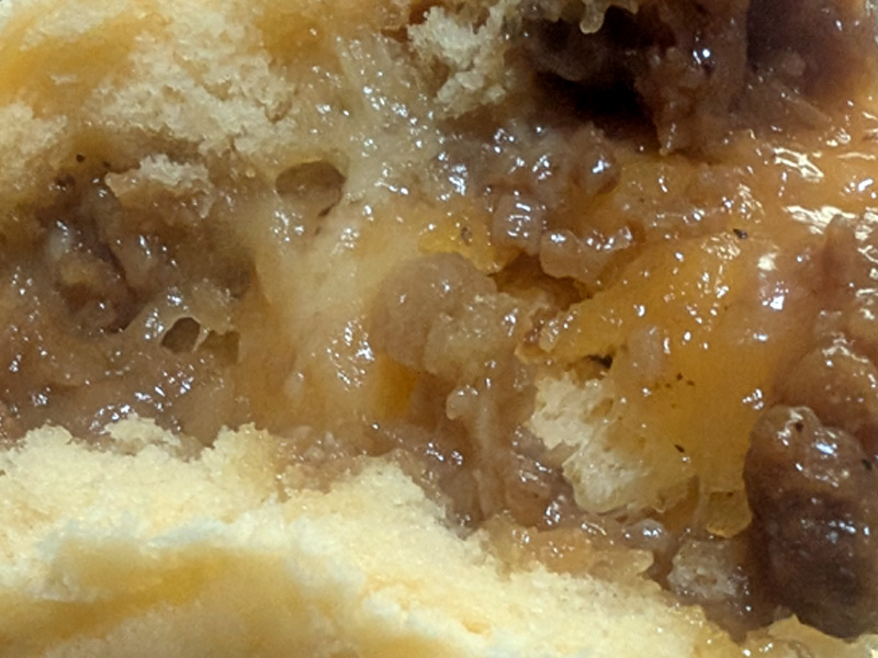 チーズはちゃんとコクがあって美味しいチーズだ。だが、真ん中にしか入っていないので、端から食べていくとチーズになかなか当たらない。全体的に入っていてくれたら、もっと嬉しい。なので、半分に割って食べると、最初からチーズが味わえるのでおすすめだ。