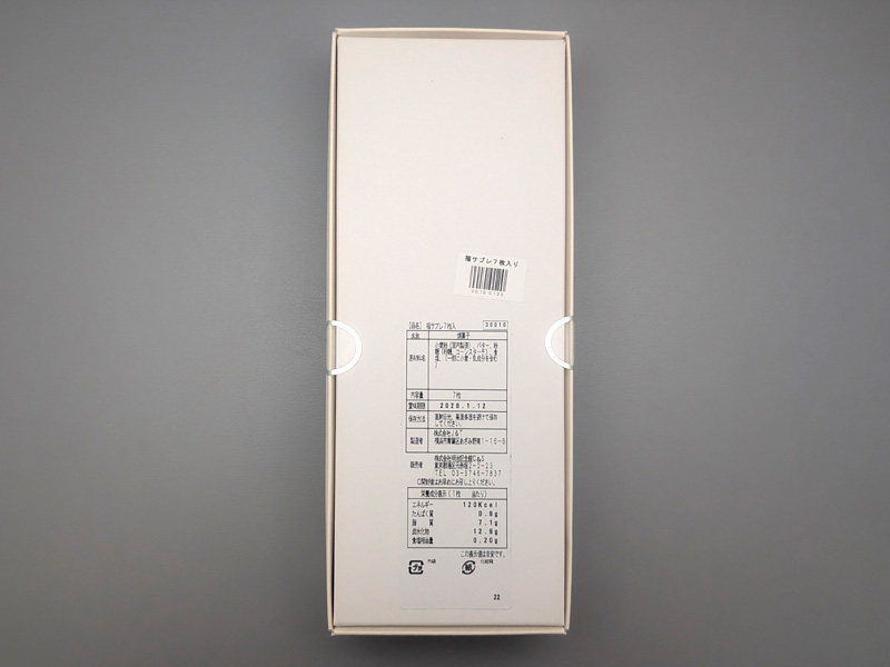 | 1枚あたりの栄養成分 | たんぱく質0.9g、脂質7.1g、 炭水化物12.9g、食塩相当量0.20g |