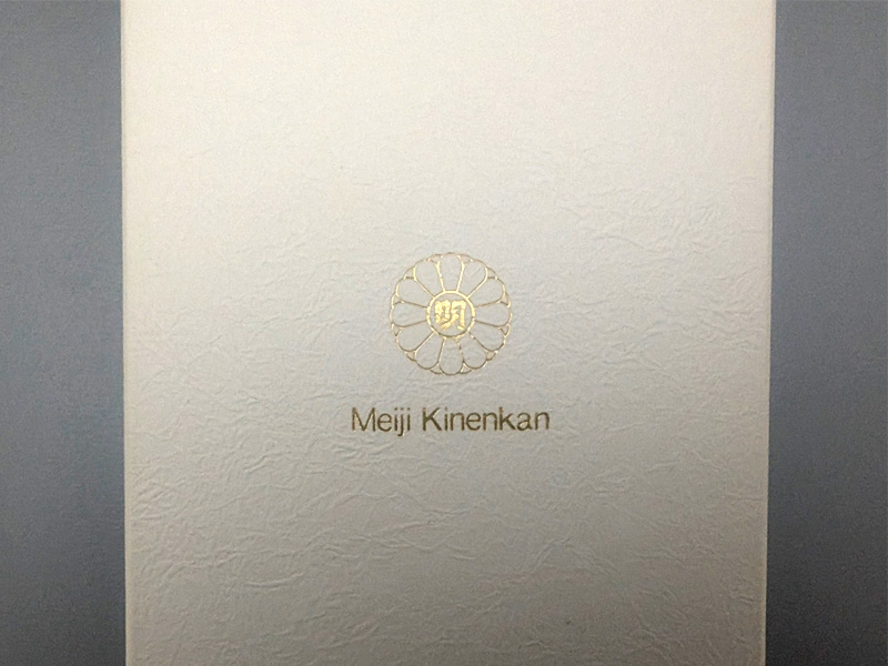 一枚取り出してみる。人に渡すのにもよさそうな、シンプルで気品のあるパッケージ。和紙のような手触りで、明治記念館のマークが金色で印刷されている。