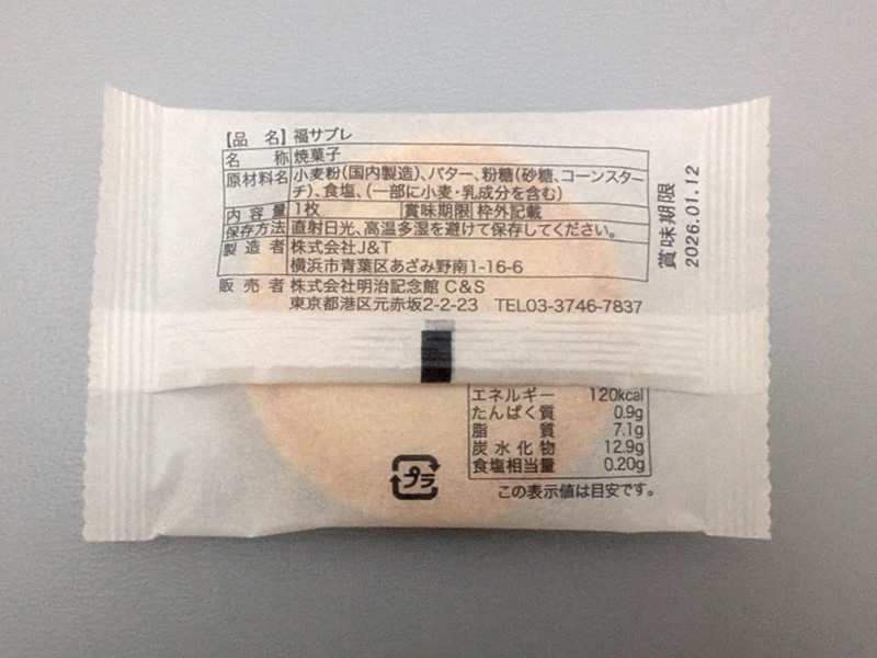 裏面。賞味期限が袋にも記載してあるのは、人にあげることを思うとありがたい。