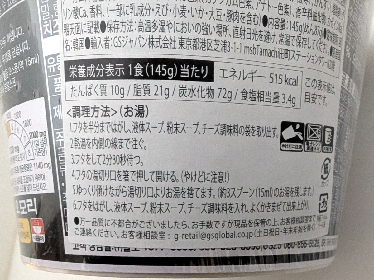 購入は前回同様、ドン・キホーテ。韓国のコンビニ「GS25」の人気商品で、日本では輸入品としてドン・キホーテなどで流通している。
