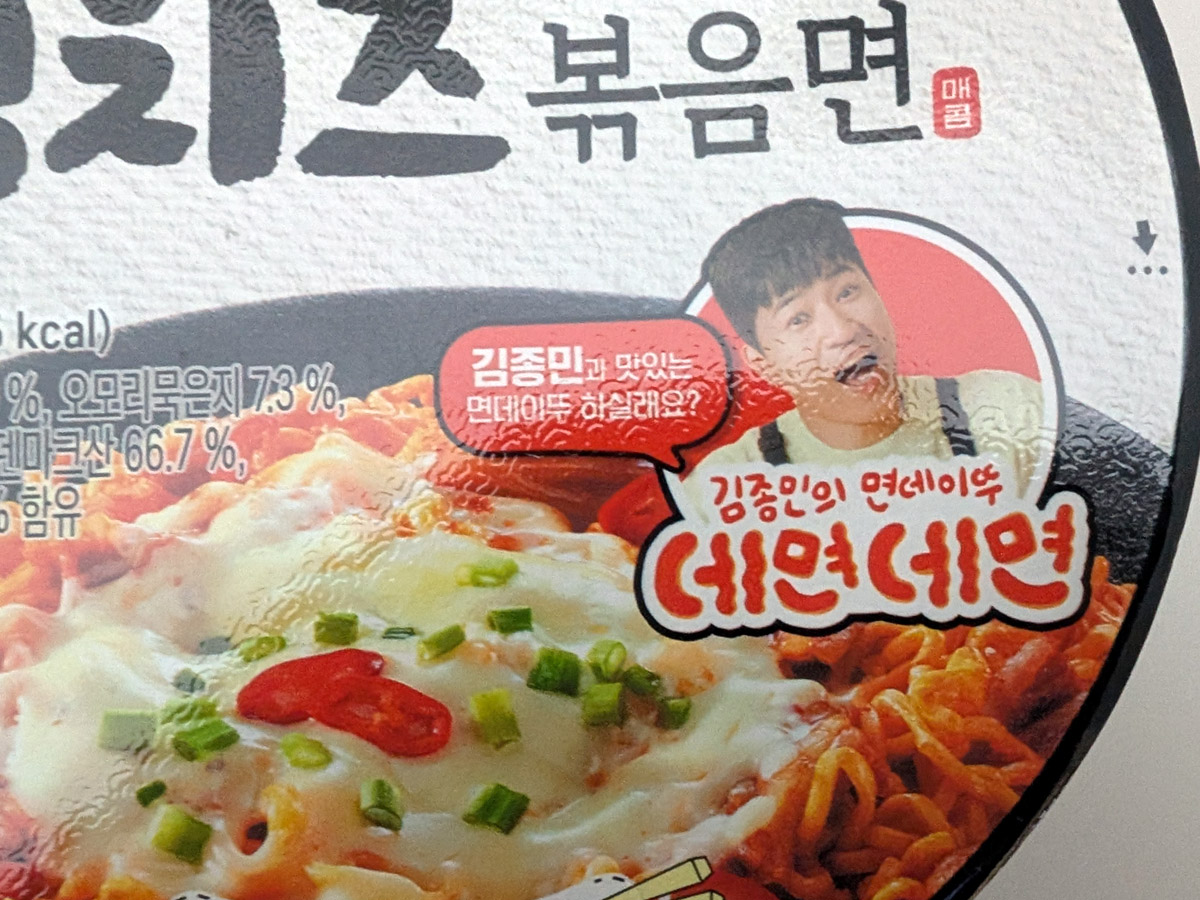 パッケージをGoogle翻訳してみると「キムチーズ炒め麺」とある。さらにこの方はキム・ジョンミン氏だということがわかった。