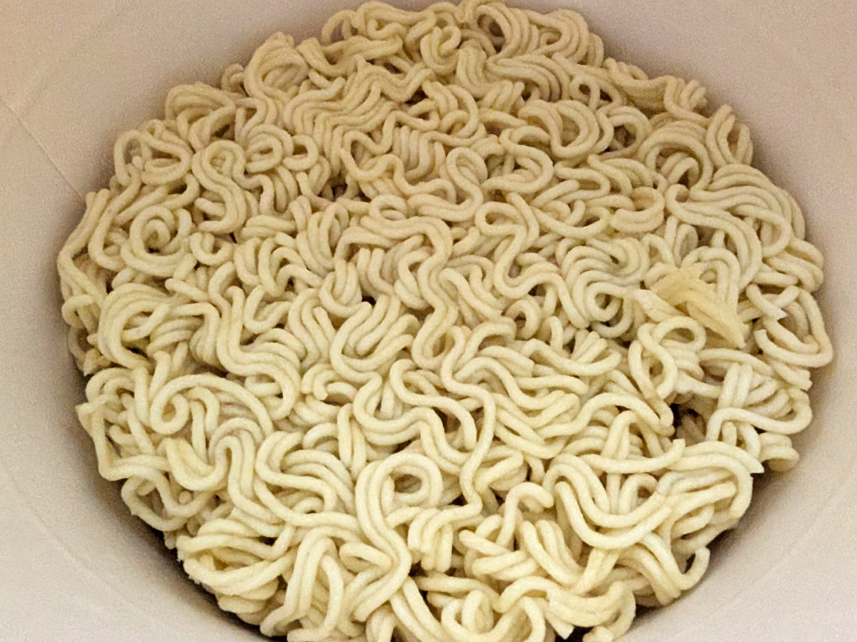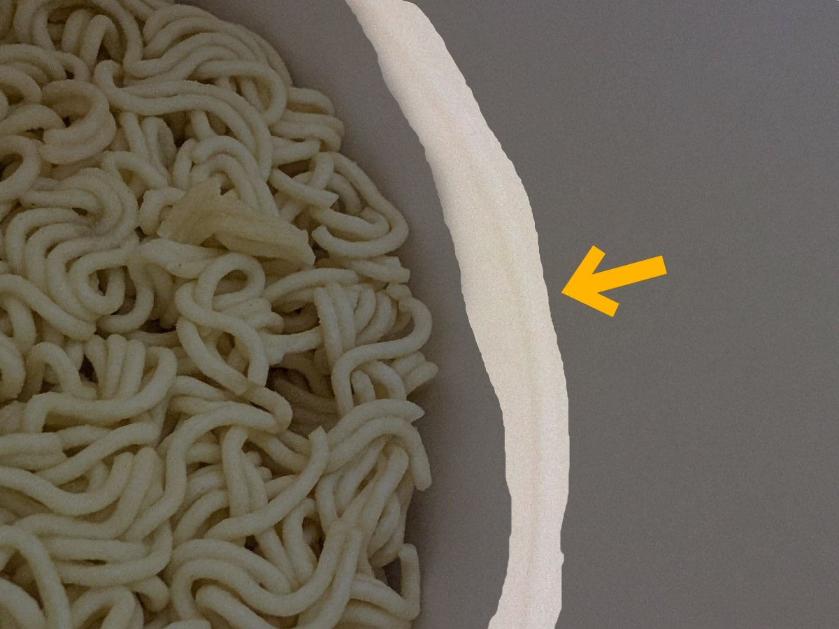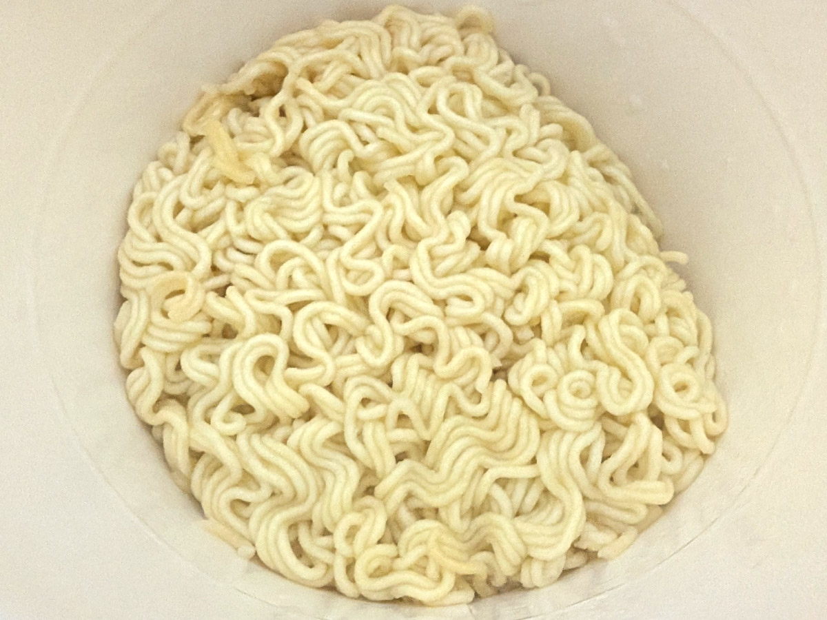 こちらもラーメンと同じく、器の大きさのわりに注ぐ位置は普通なので注意。この内側の線までお湯を注ぐ。
