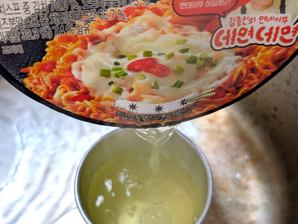 韓国系の麺を食べたことある人ならお馴染みの注ぎ口。後ほど注意点を含めて解説。