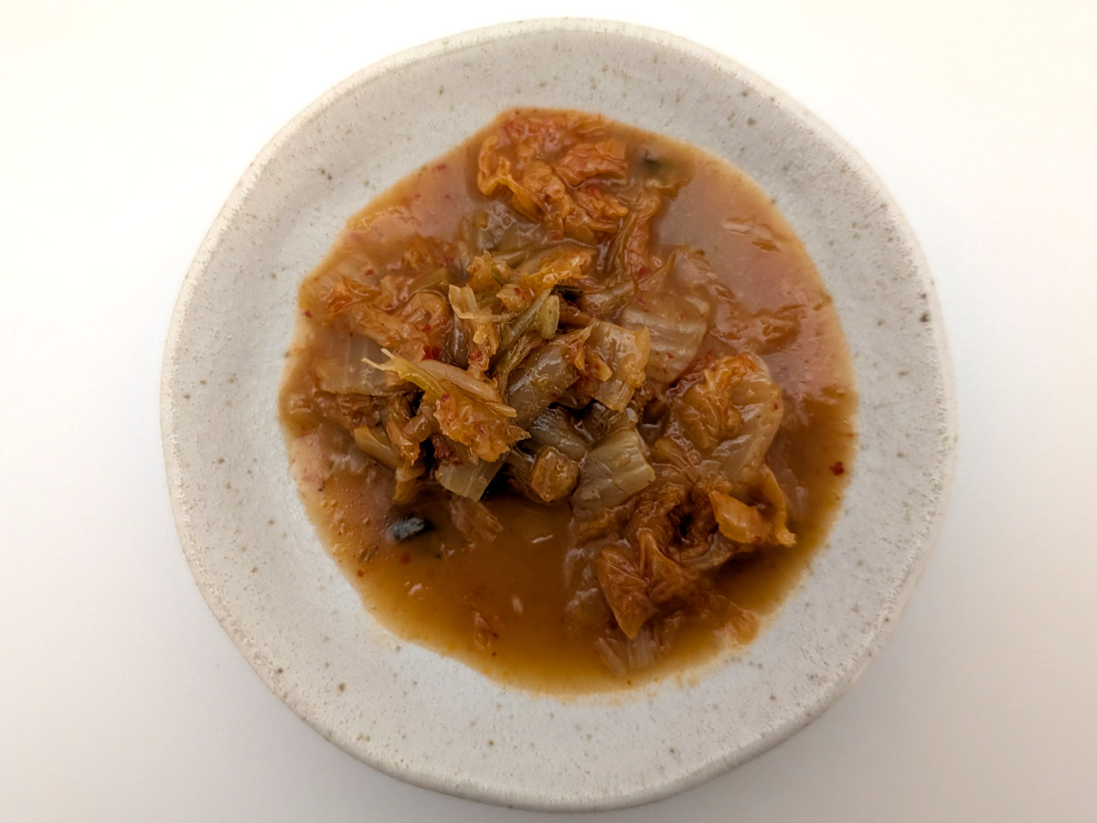 キムチ自体はそこまで酸っぱくなく、歯ざわりもある。