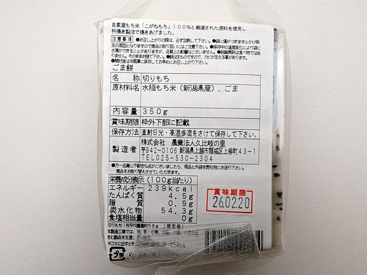 餅としての伸びや滑らかさはしっかりしており、いつもの久比岐の餅らしい安定感がある。