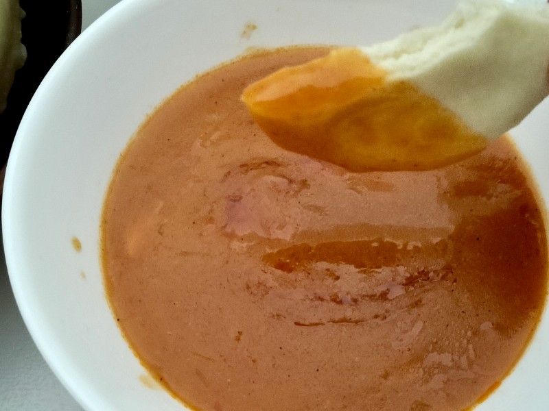 ルーをつけていただく。カレー屋さんのナンのように香ばしく、カリカリっとする感じではないけれど、しっとりしていてもっちり、むっちりとした食感でおいしい。