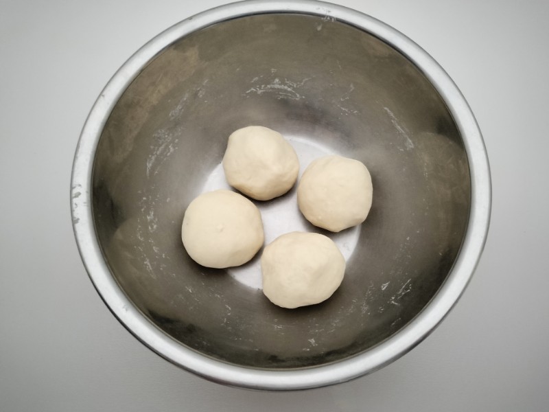 ②①の生地を4等分し生地を丸めてボウルに入れ、