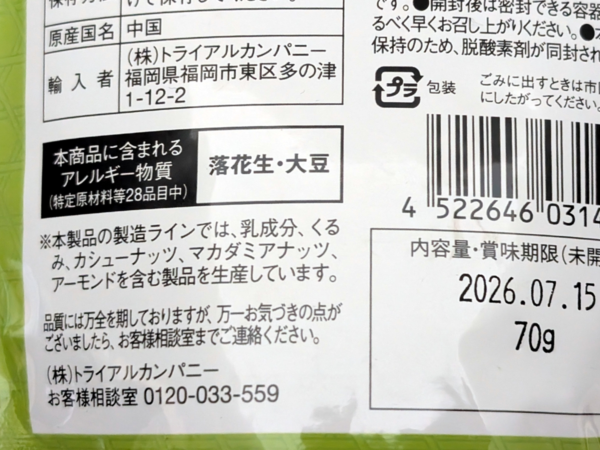 トライアルのPBらしく手頃な価格で、しっかりとした個性を感じられる一袋だった。甘さとわさびの刺激という組み合わせは好みが分かれるものの、味の方向性は明確でシリーズの中でも印象に残った。