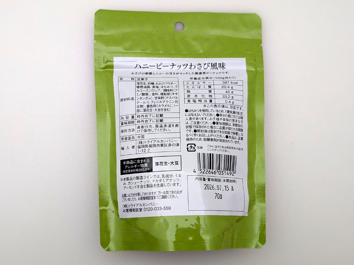 今回取り上げるのは、「ハニーピーナッツわさび風味」。甘いピーナッツにわさびという組み合わせは珍しく、どのようなバランスになっているのか気になるところ。