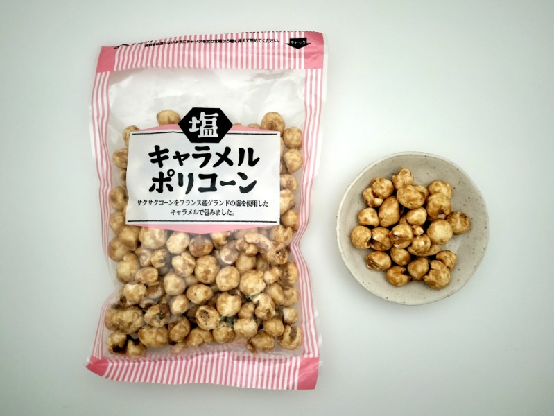 『塩キャラメルポリコーン』と『塩キャラメルぽりこーん』は、想像以上の美味しさで、しっかりとコーティングされた塩キャラメルの甘さと塩気のバランス、食感の良さもあり、食べ始めると後を引くまさに病みつきの味。