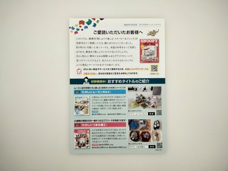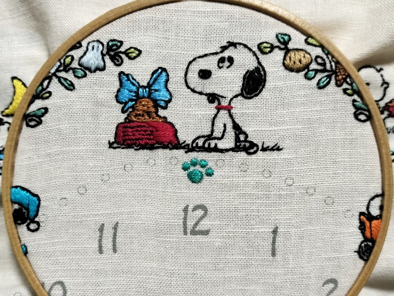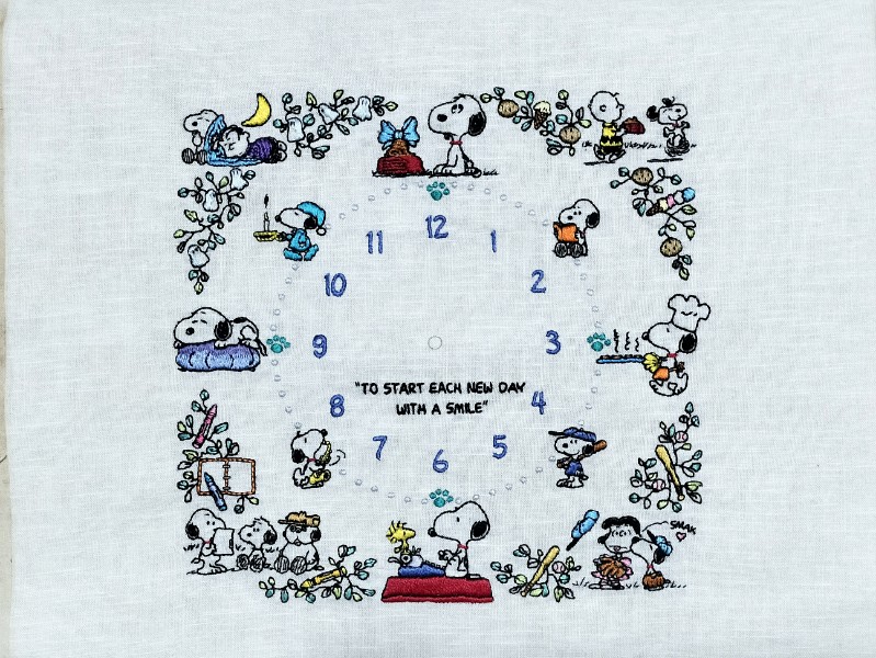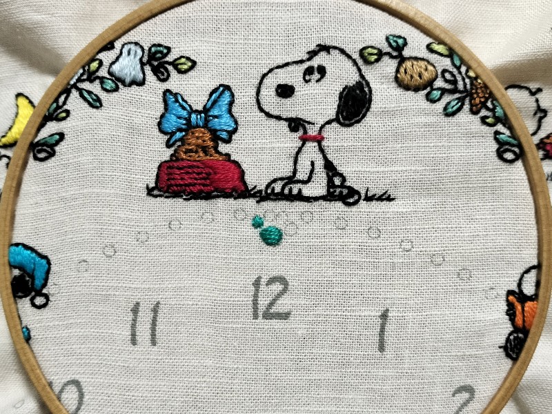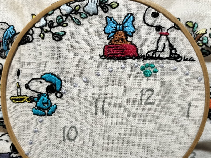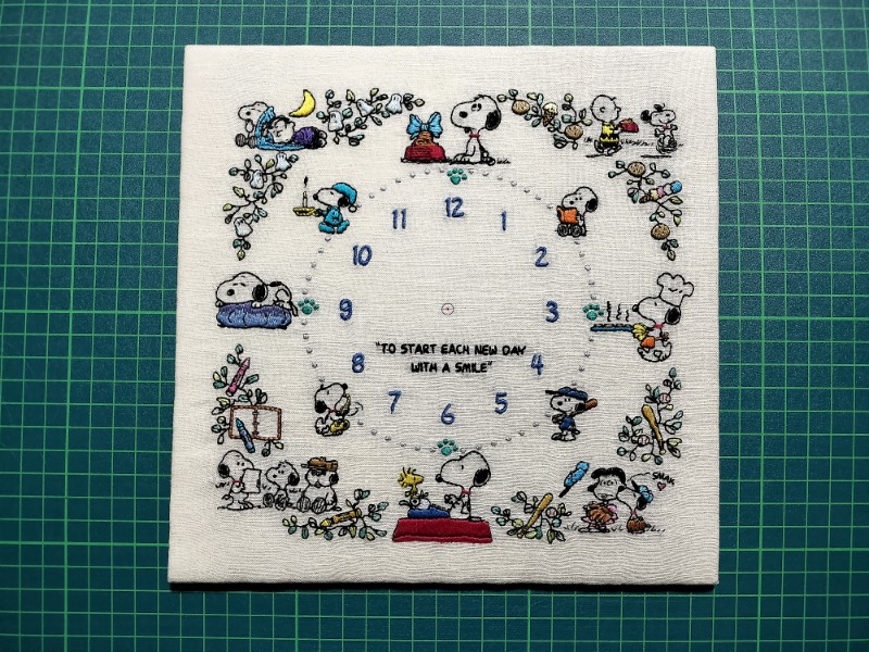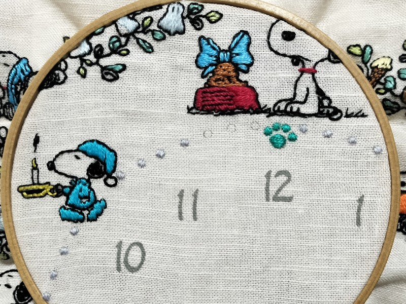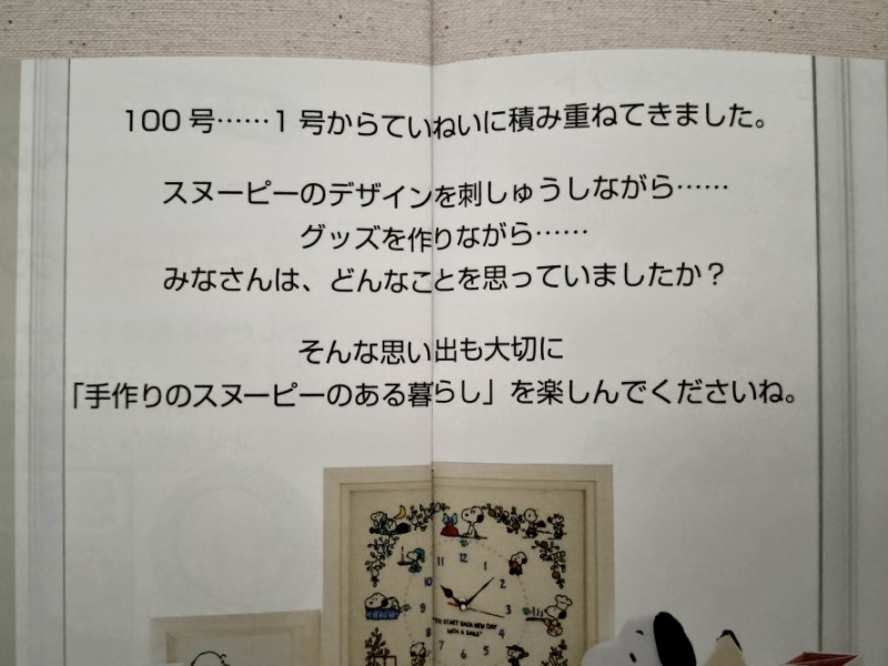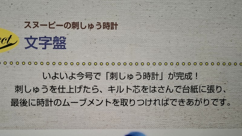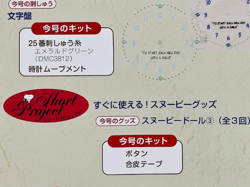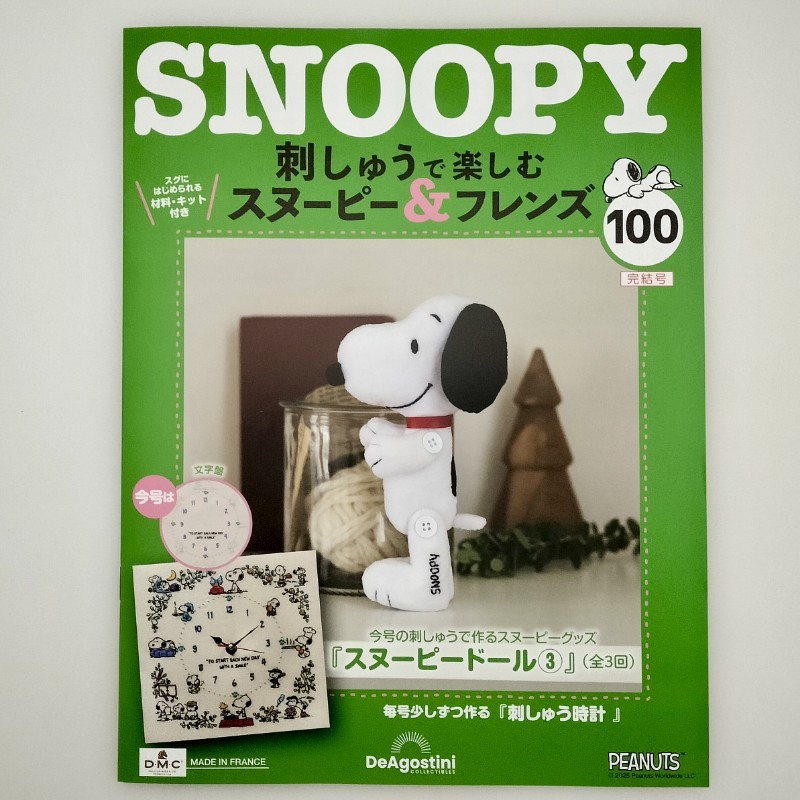「刺しゅうで楽しむスヌーピー&フレンズ」の創刊号は2022年2月8日発売、約3年10ヶ月の100号をもって完結。当初は80号までということだったが、20号プラスされて100号となり、それまでの「タペストリー」ではなく「刺しゅう時計」を作ることになった。