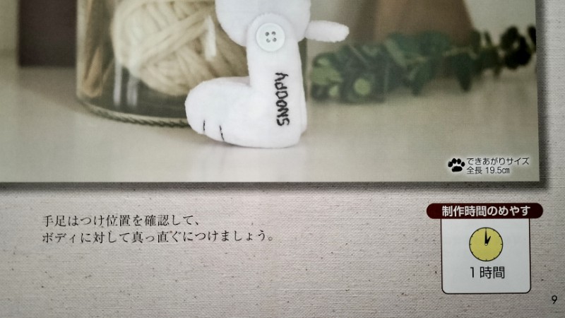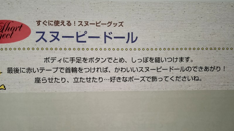 なんとかスヌーピードールが完成。前号でコロッとさせるべく、パーツに綿をパンパンに詰めているので、手足を縫いつけるのが難しかった。