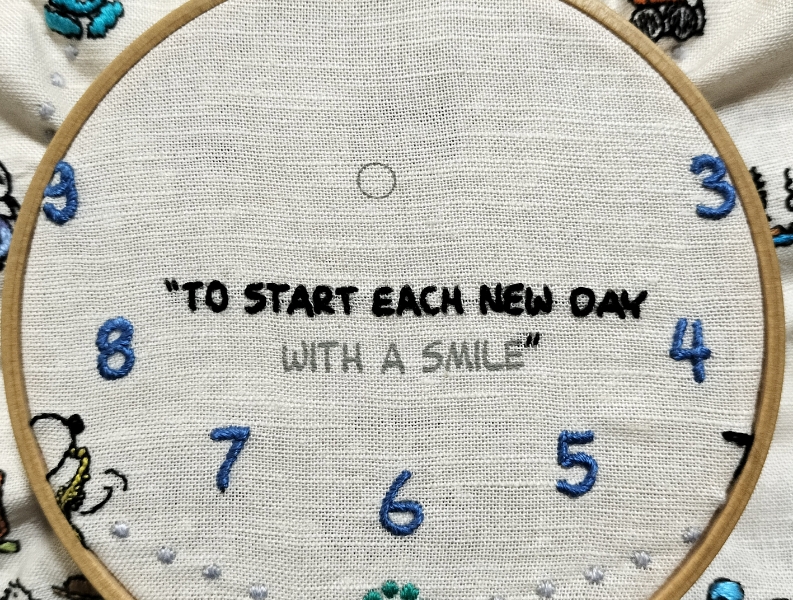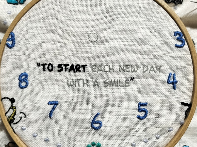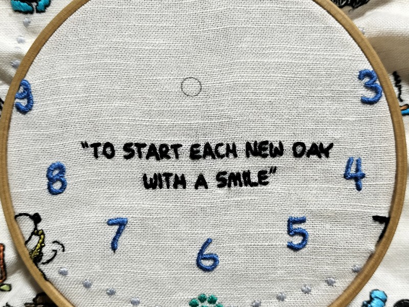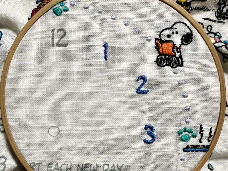 完成した「刺しゅう時計」は、文字盤の細かい刺しゅうがたくさんでちょっと大変だったけれど、1番目にすることが多い部分なのでゆっくり時間をかけて丁寧に刺しゅうした。
