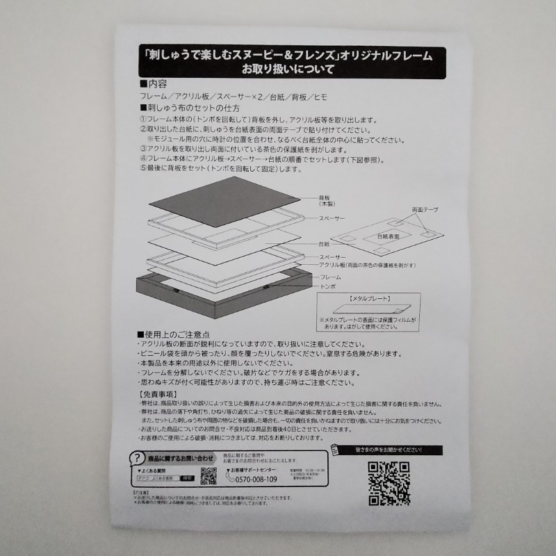 フレームに入れるやり方や注意書きが書いてある紙が入っているので、そのとおりにやってみる。