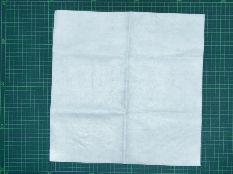 次にキルト芯をカットするのだけれど、くっきり折りじわがついているので…