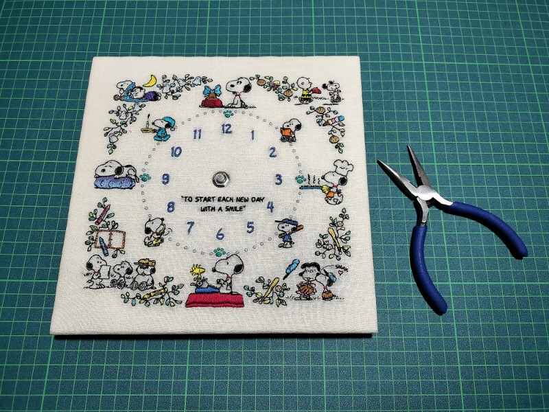 刺しゅう時計のムーブメントをとめるネジを締める時にペンチを使った。