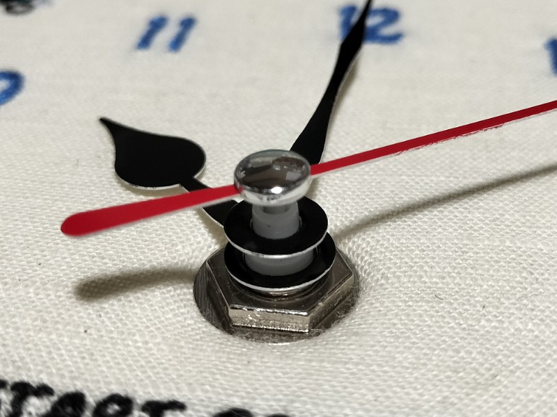最後に時針、分針、秒針をはめ込んで、できあがり。