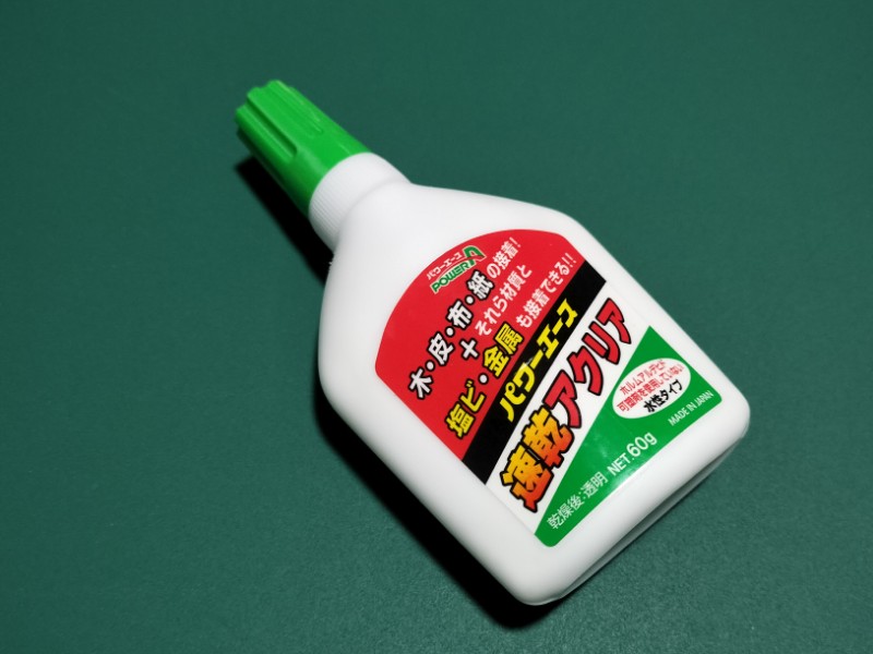 首輪の合皮テープを貼り付けるときにボンドが必要。使ったのは「パワーエース 速乾 アクリア」。(※ブランド統合により現在は「アルテコ 速乾アクリア」となりました)