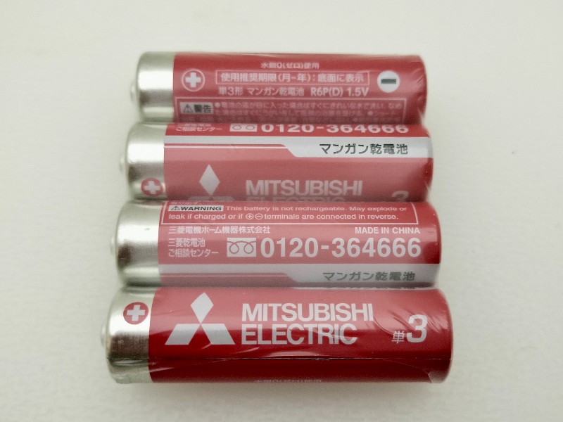 サイズは「単3」。ちょっと調べたらシンプルなアナログ時計(針式)にはマンガン電池が推奨されているようなので単3のマンガン電池を用意した。時計で使うのは1本だけど、4本とか6本入りで販売されていることが多い。