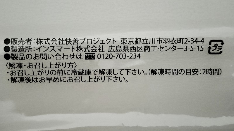 ※以降、販売者、製造所、解凍方法は4種類全て同じなので割愛します