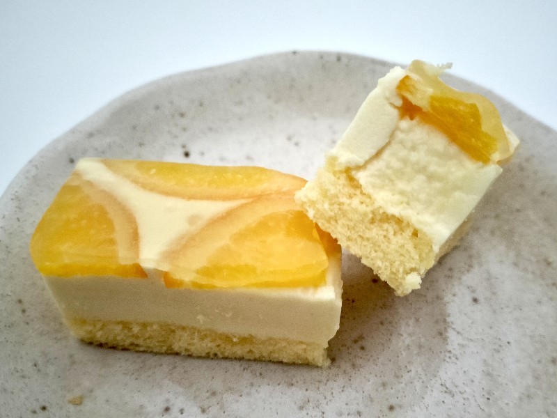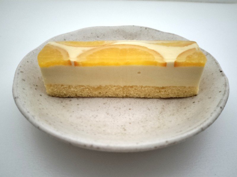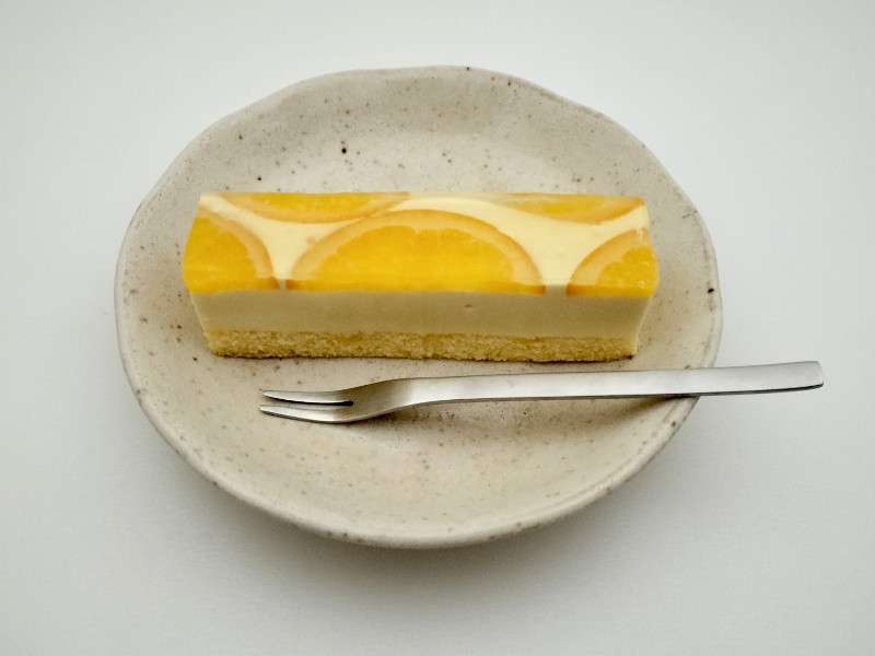 シトラス系のさっぱりとした甘さと味だが、レアチーズのチーズ感はあまりない。ネーブルの甘酸っぱさが美味しい、しかしそれだけに、ネーブルがフォークで切れずにペロンと取れちゃうと、ネーブルとそれ以外で食べる感じできれいに美味しく食べることができないのは残念。