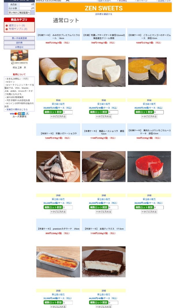 業務用食材市場「Mマート」というインターネットで購入できる食材B2B(企業間取引)のサイトで、ZEN SWEETSの商品が販売されている。2026年3月現在。
